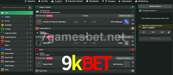 O 9kbet oferece uma grande seleção de opções de apostas em e-sports com probabilidades competitivas